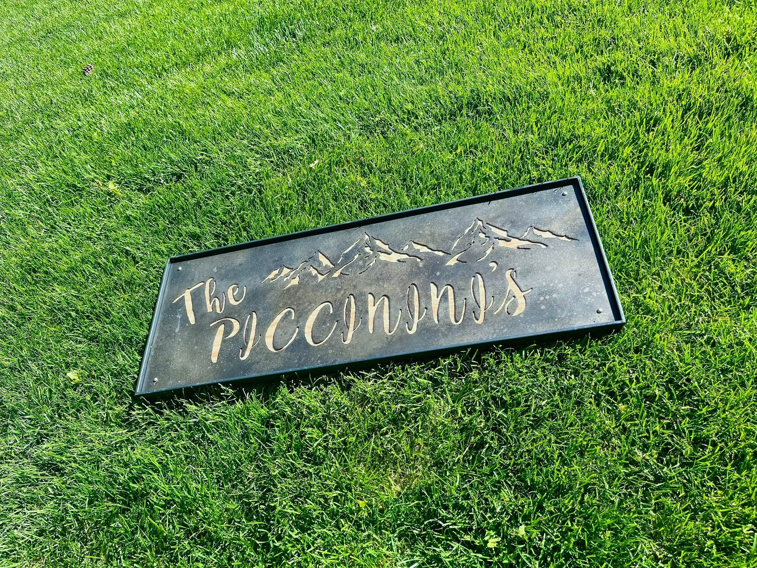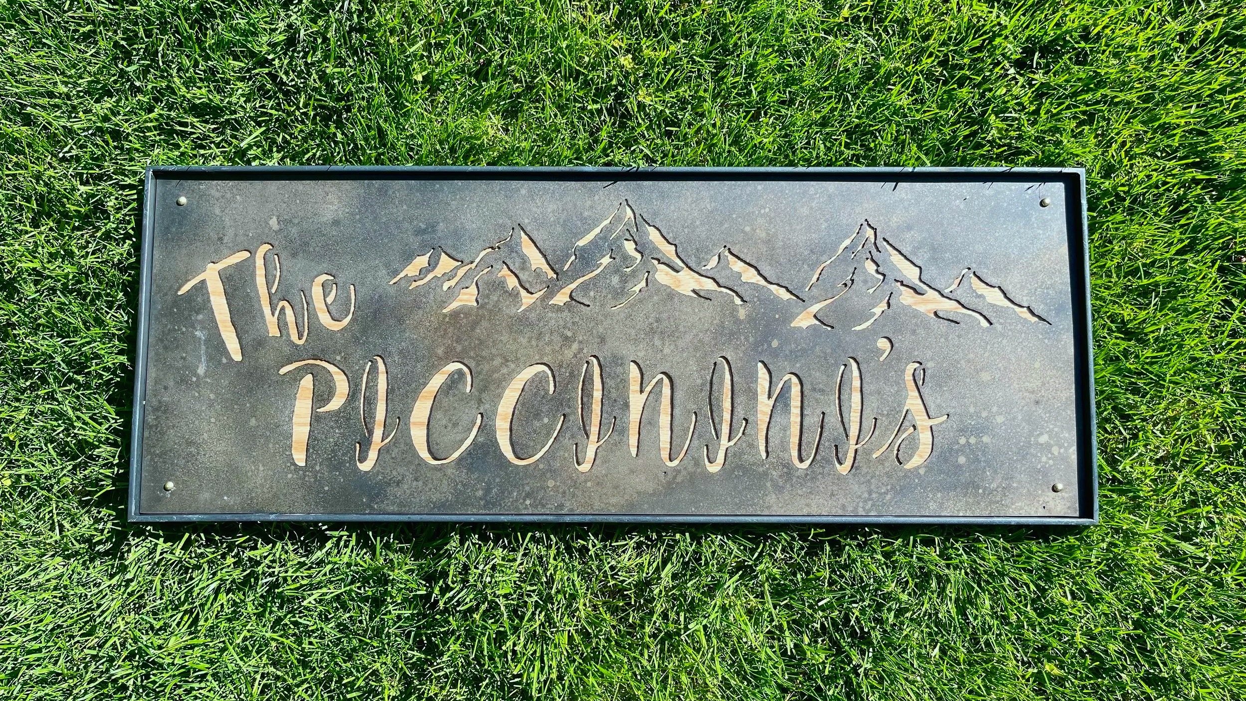 personalized family name sign in steel and red oak
